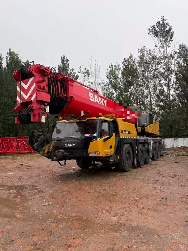 Les spécifications:87m de port de 8 sections, 50m de grille, système de superlift, contrepoids de 100 tonnes, deux moteurs Weichai Stage VI, 2 crochets.